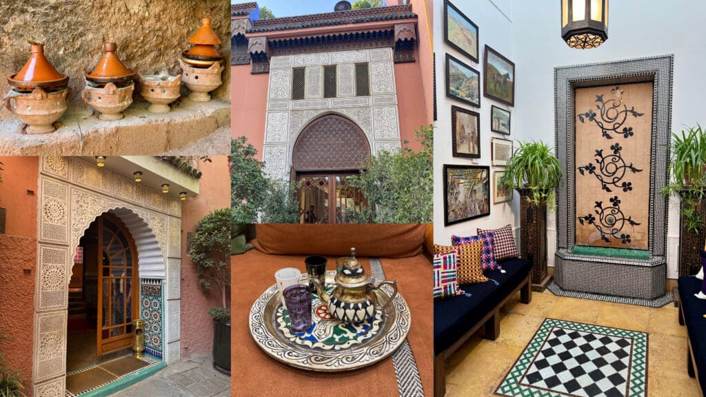 Everywhere you look, Morocco’s beauty is richly layered — intricate hand carvings, colorful art, and exquisite textiles. Patterns and textures abound, and the soft sound of fountains alongside greenery creates a feeling of calm and connection to nature.